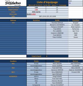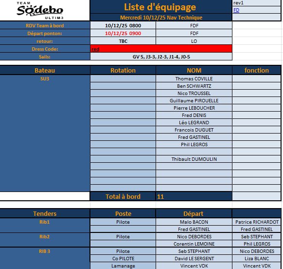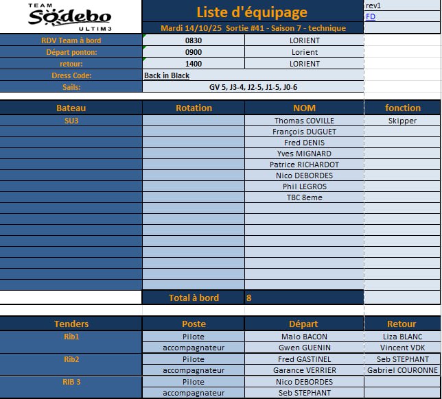 crew list pour demain. on reprend les bonnes habitudes des sorties a la journée. Demain la clientèle à bord est plutot techno avec nos fournisseurs et Novatics. Bulletin météo by Fred Denis avant 0900 Merci de respecter le dress code, pour ceux qui sont en flux tendu les lessives sechent vite en ce moment.