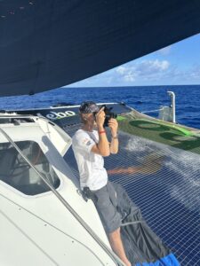 Bonsoir Chloé, Oui, nous avons pu profiter pleinement de l’escale martiniquaise. C’est un convoyage qui s’annonce tranquille. nous allons mettre 7 jours, en gros, pour rejoindre notre base de Lorient. L’idée est de ramener le bateau le plus « propre » possible. Sans aucuns accros! Effectivement, nous suivons un routage nous permettant d’optimiser ce retour. Encore merci de votre soutient assidu 😁