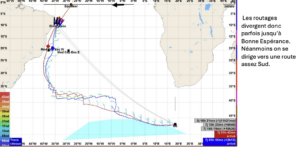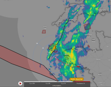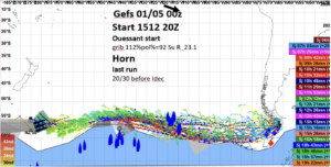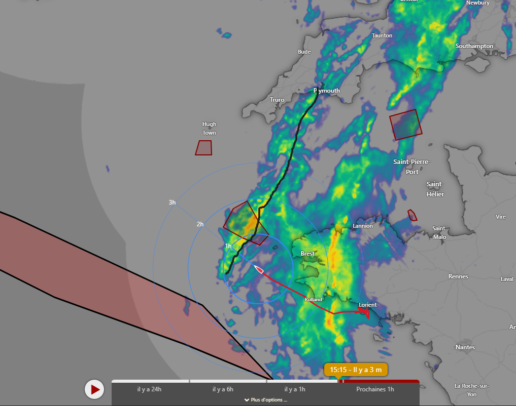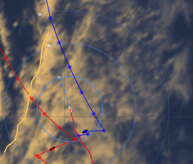 OK. Plus sûr par l'Est.. On va suivre l'évolution en force et direction. Ca va peut être passer naturellement à l'Est si ça reste comme ça. Ou alors on sera cap en plein sur l'ile.