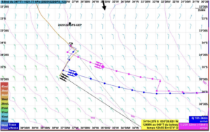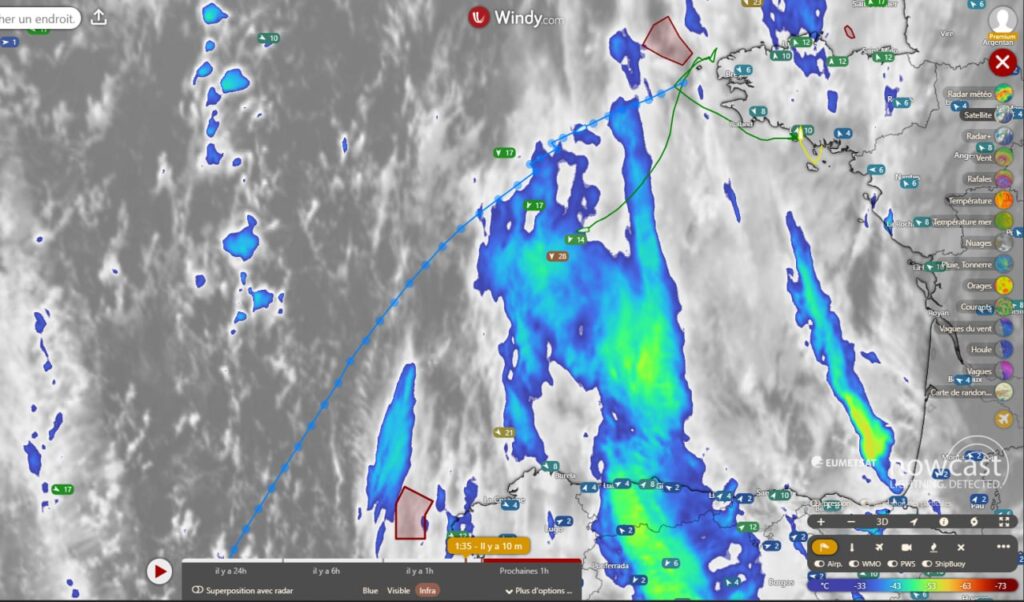 Le cap est pas mal les gars, ça prend de la droite progressivement, ça va continuer. Le max droit sera du 010TWD vers 0100UTC