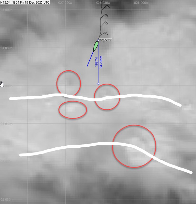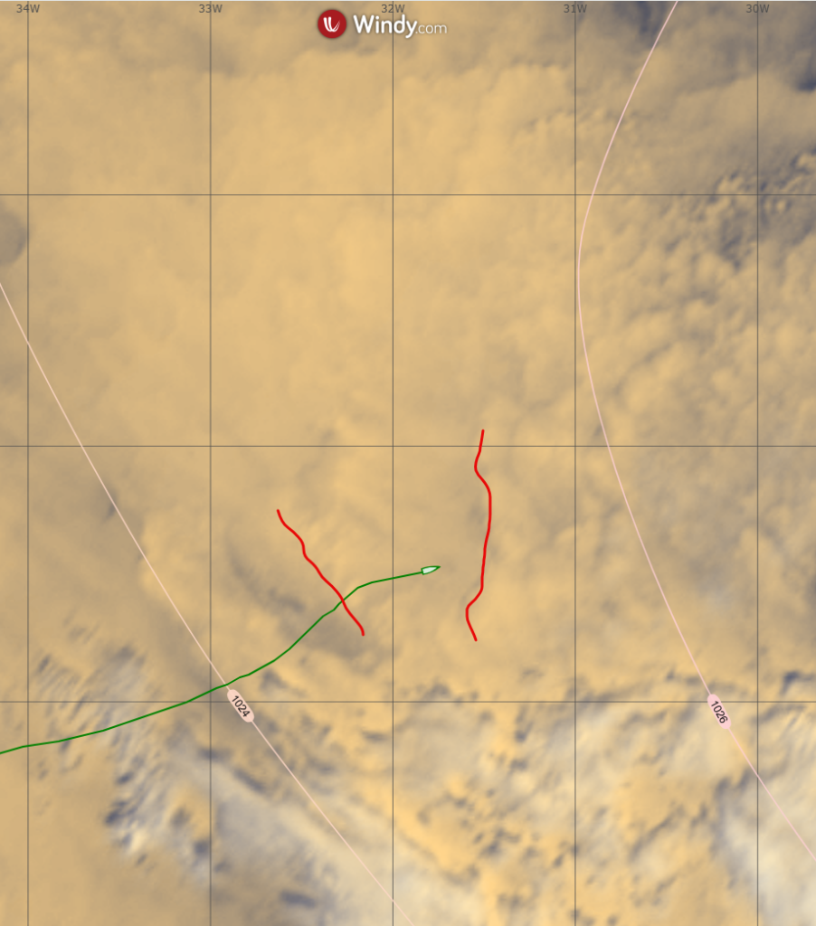 Vous allez vraiment bien, continuez. je vous demanderai certainement des photos des nuages quand vous serez plus Sud à l'approche de la ZCIT. Ca m'aidera à identifier les couches limites.