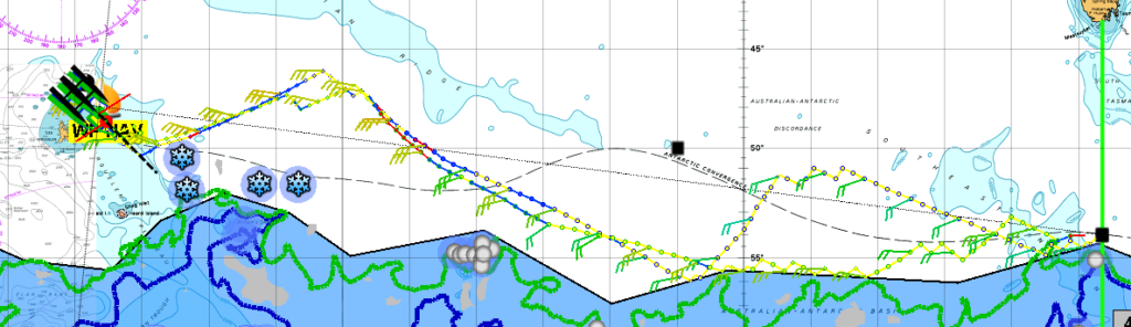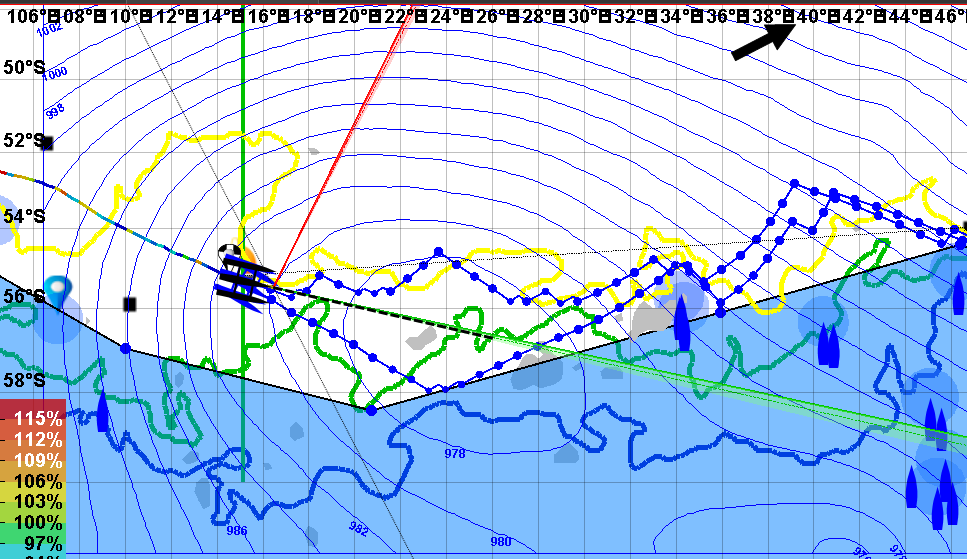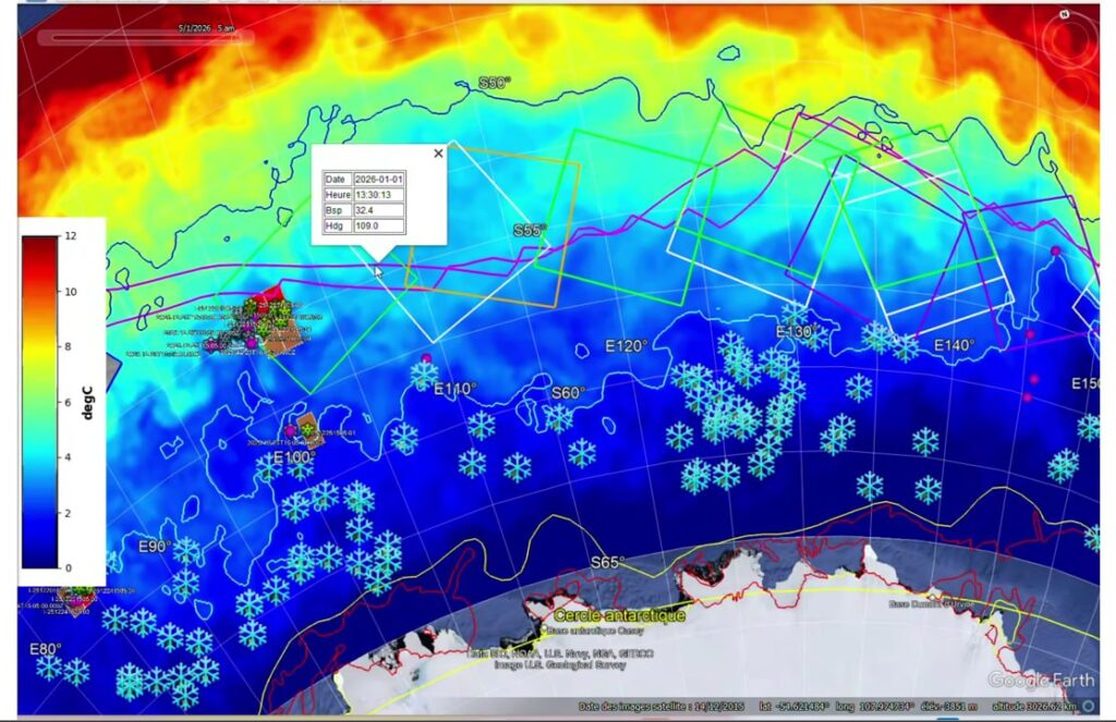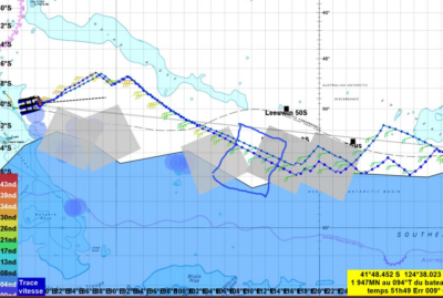 Cool de vous voir reprendre un peu de vitesse. On espère que ce n'est pas trop énorme par chez vous. On dirait que le pire s'éloigne un peu de vous. Ca va sans doute vous permettre de progressivement naviguer plus bas et plus vite au faire et à mesure de l'amélioration des conditions. Ca fait du bien de voir le vent de nouveau plutôt sous les 40 !