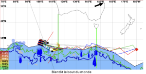 Bon, franchement, la vitesse de ce matin (lundi) est pas terrible, à croire que tout le monde pionce dans sa banette. Le bateau semble immobile. C'est le moment de se sortir les doigts du ionf les gars. Et ne venez pas nous raconter que la ligne est franchie, l'argument ne tient pas au regard de tous ceux qui comme moi avaient pris l'habitude de consulter la carte de jour comme de nuit ! Encore bravo. Et merci
