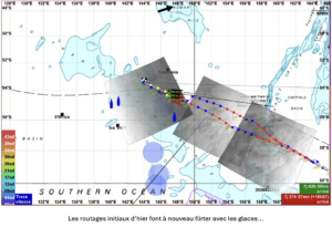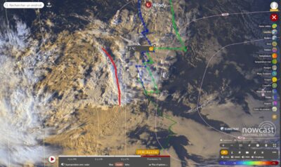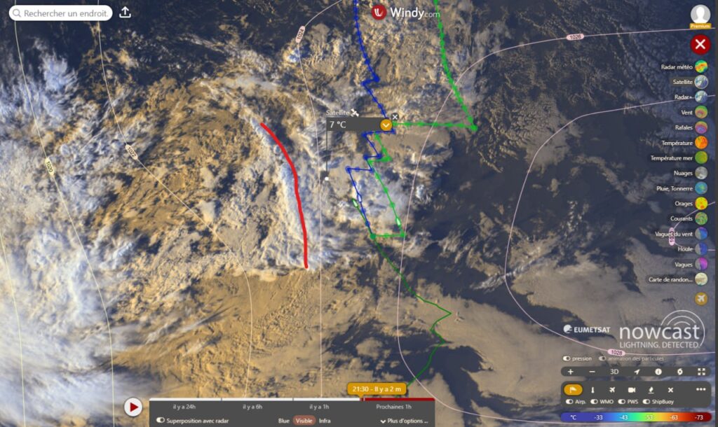 Ca va toujours bien ! On dirait que le vent est maintenant plus adonnant. On suppose que vous êtes maintenant dans le vent le plus faible et on peut s'attendre à ce que ça se renforce de nouveau dans les heures qui viennent.