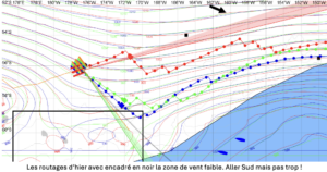 Pour le dernier gybe, je pense qu'il faut le faire un peu avant les routages. On a tendance à naviguer un peu plus bas.