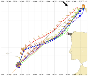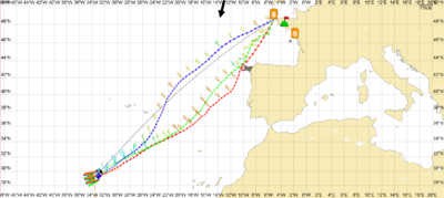 Bien reçu. On va étudier ça. L'inconvénient d'aller dans l'Ouest de Madère, c'est que ça nous rapproche de la molle. Ce serait cool de pouvoir se décaler autant que possible dans l'Ouest et de ne pas avoir à se préoccuper des Canaries, mais on ne veut pas prendre le risque d'être ralentis par des petits airs !