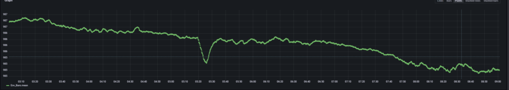 Le phénomène qui arrive ressemble à une structure à double front. Après le passage du premier front, le vent prendra temporairement de la droite. Puis il reviendra à gauche en avant de la masse nuageuse plus active actuellement plus dans l'Ouest, qui donnera de la grosse droite probablement soudaine jusqu'au Ouest Nord Ouest et du vent plus fort.