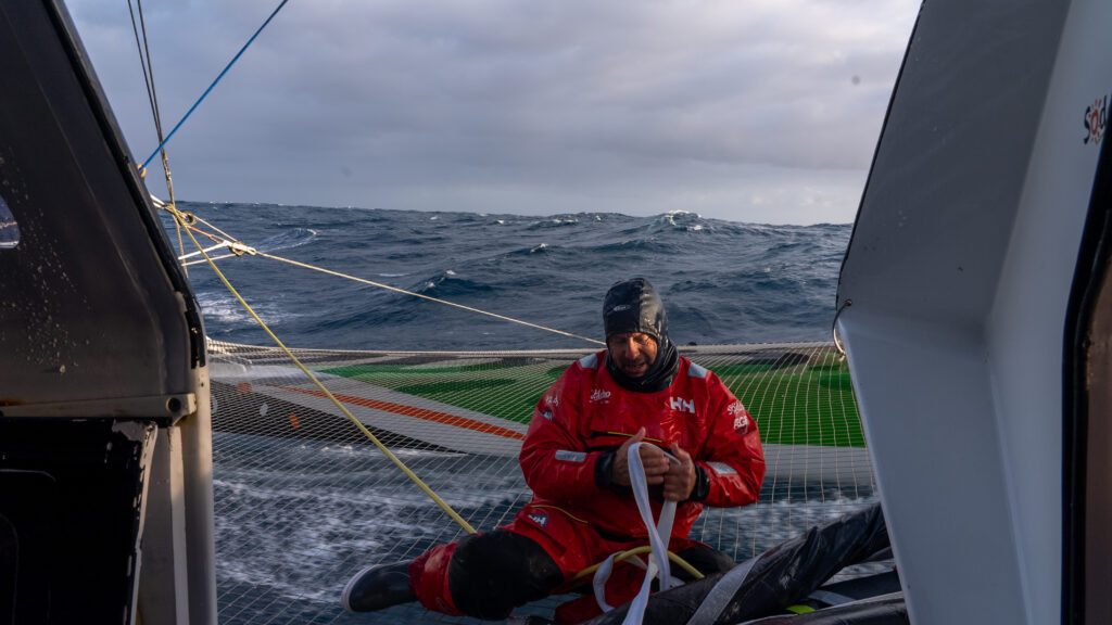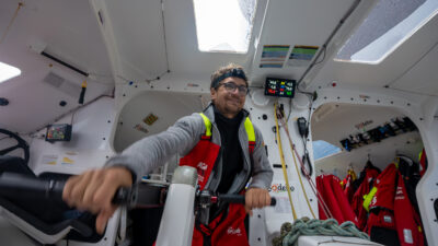 Pierre Leboucher est un sportif dans l’âme, qui a commencé la voile en Optimist sur l’Erdre, à côté de Nantes, avant de suivre la filière classique du dériveur qui l’a mené jusqu’au 470. Il est deux fois vice-champion du monde et finalistes auxJeux Olympiques de Londres en 2012 (7ème). « Je me suis alors dit qu’il y avait plein d’autres choses à faire et je me suis mis à la course au large. » Particulièrement au Figaro, dont il est devenu un pilier du circuit, remportant notamment la Sardinha Cup en 2022 et une étape de la Solitaire du Figaro. La porte de Sodebo Ultim3 s’est ouverte l’année dernière et Pierre a participé à l’ensemble de courses en équipage dont le Trophée Jules Verne l’hiver dernier.