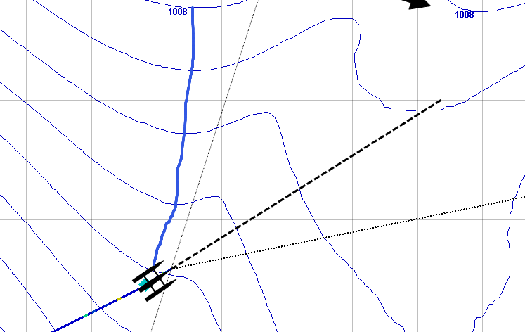 On continue à naviguer en mode VMG pour faire du gain Nord.