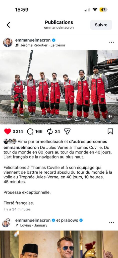 Bonjour encore bravo à l’équipe pour ce record ! Thomas va t’il retenter en solitaire l’année prochaine si une fenêtre météo se présente ? Cordialement merci
