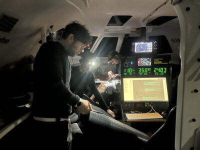 Bon travail cette nuit avec la dorsale, vous avez bien progressé par rapport aux routages. Le vent est toujours variable en intensité car vous êtes toujours proches de l'axe de la dorsale, mais cela devrait progressivement s'améliorer.